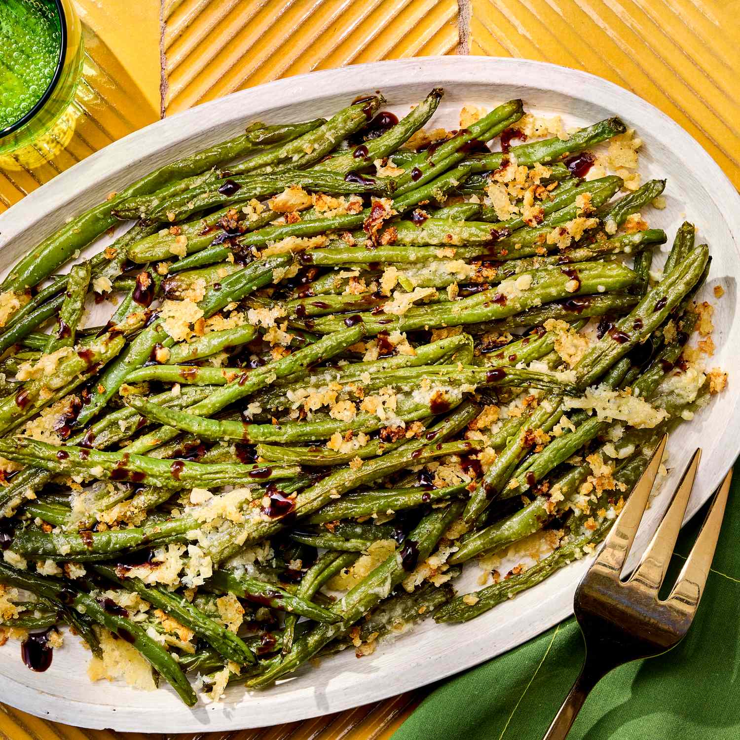 Smashed Green Beans with Parmesan & Balsamic