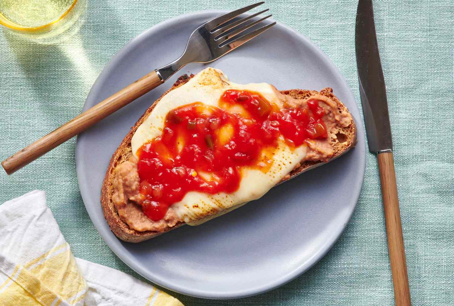 One morning I found myself standing in front of the refrigerator wondering what to make for breakfast. I was growing tired of the egg “sammy” I typically had each day, but I’m not a sweet breakfast person, so I was trying to figure out another savory meal to make. That’s when a bowl of leftover refried beans caught my eye. I toasted a thick slice of bread. I reheated some of the beans in the microwave. I spread them on the toast, topped it with a slice of sharp Cheddar and popped the whole thing in the toaster oven to melt the cheese. I topped it with a spoonful of salsa and dug in. It was perfect. And this four-ingredient breakfast has been on steady rotation ever since.