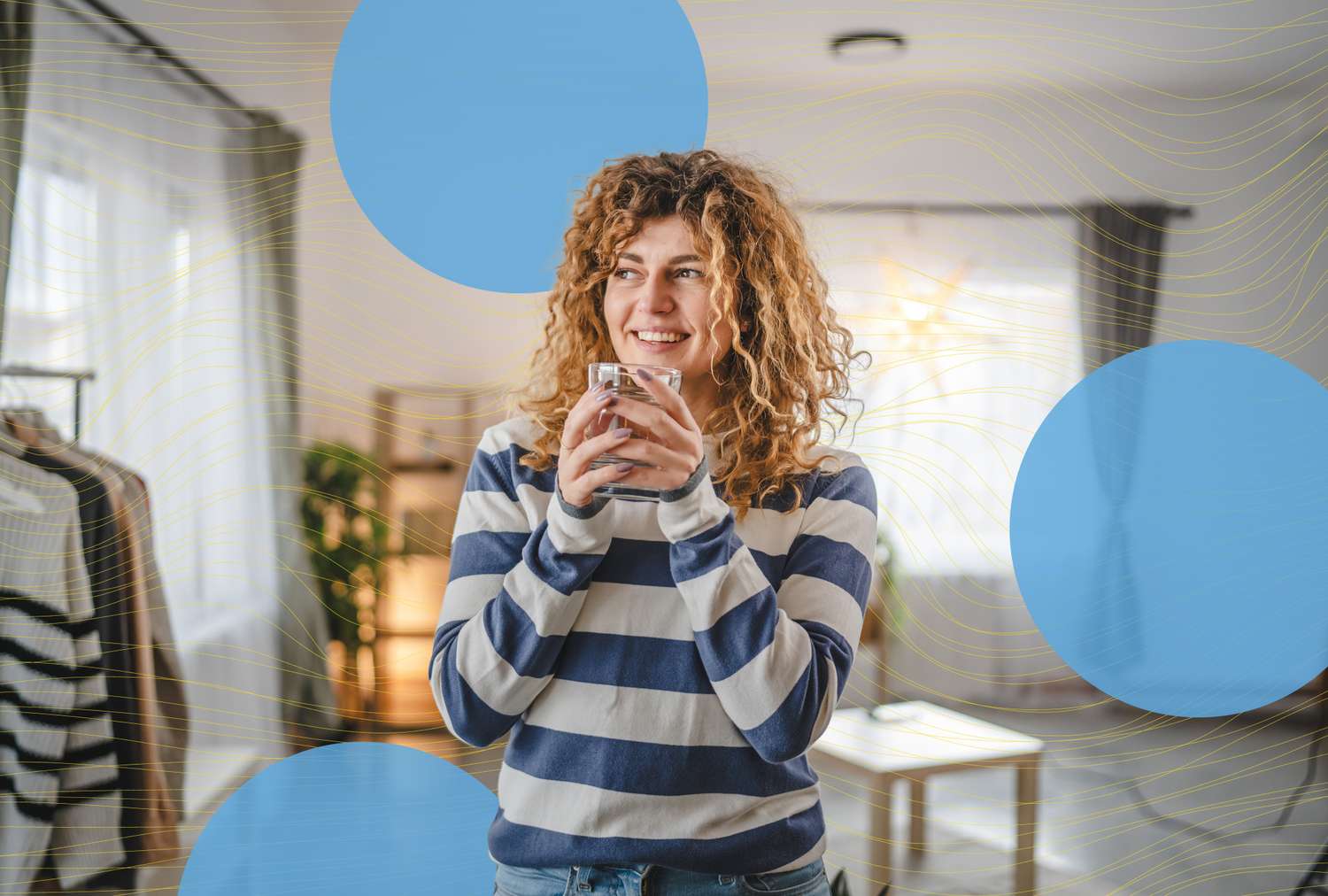 Starting your morning with water can help you stay hydrated throughout the day. Hardy notes that one study found that the first six hours after waking are the prime time that people hydrate. For this reason, she suggests drinking a glass of water early in the morning, ideally before reaching for coffee.