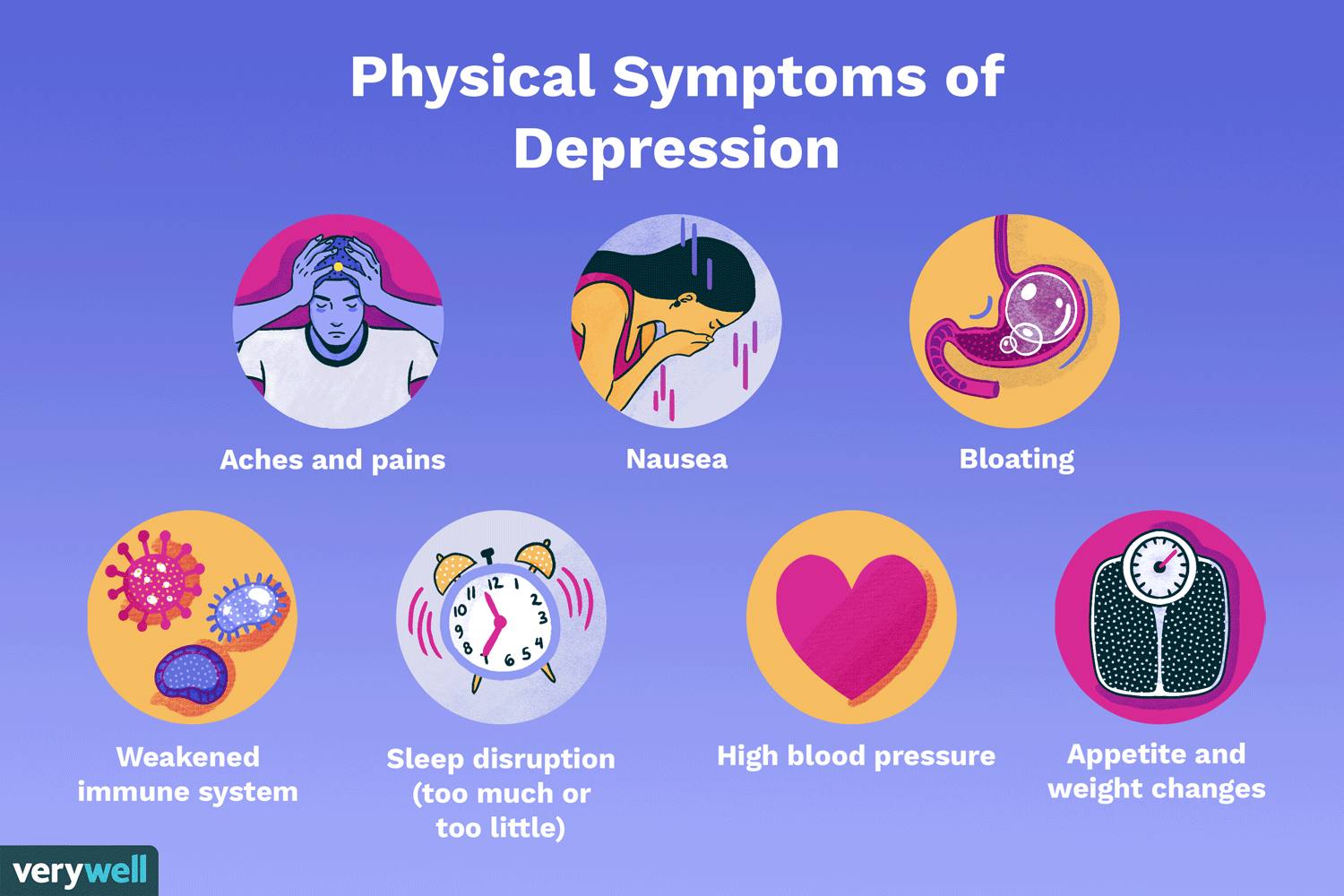 - Depression can cause physical symptoms like pain, stomach issues, and fatigue.
