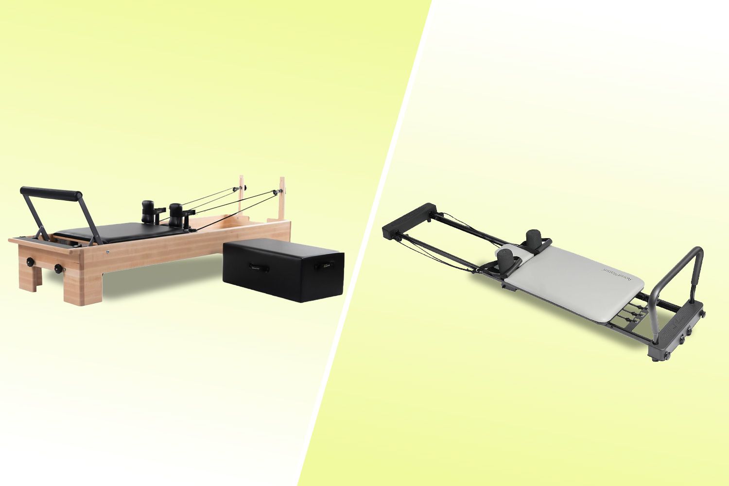 With this at-home Pilates reformer, you can choose a just-the-basics option and buy the accessories (such as a jump board or additional springs) to customize your resistance à la carte. Or, you can go with a bundle such as this Pilates reformer that’s already equipped with springs and comes with a box, pole, and two workout DVDs. At 96.5 inches, it’s longer than many available options, which you might appreciate if you’re tall.