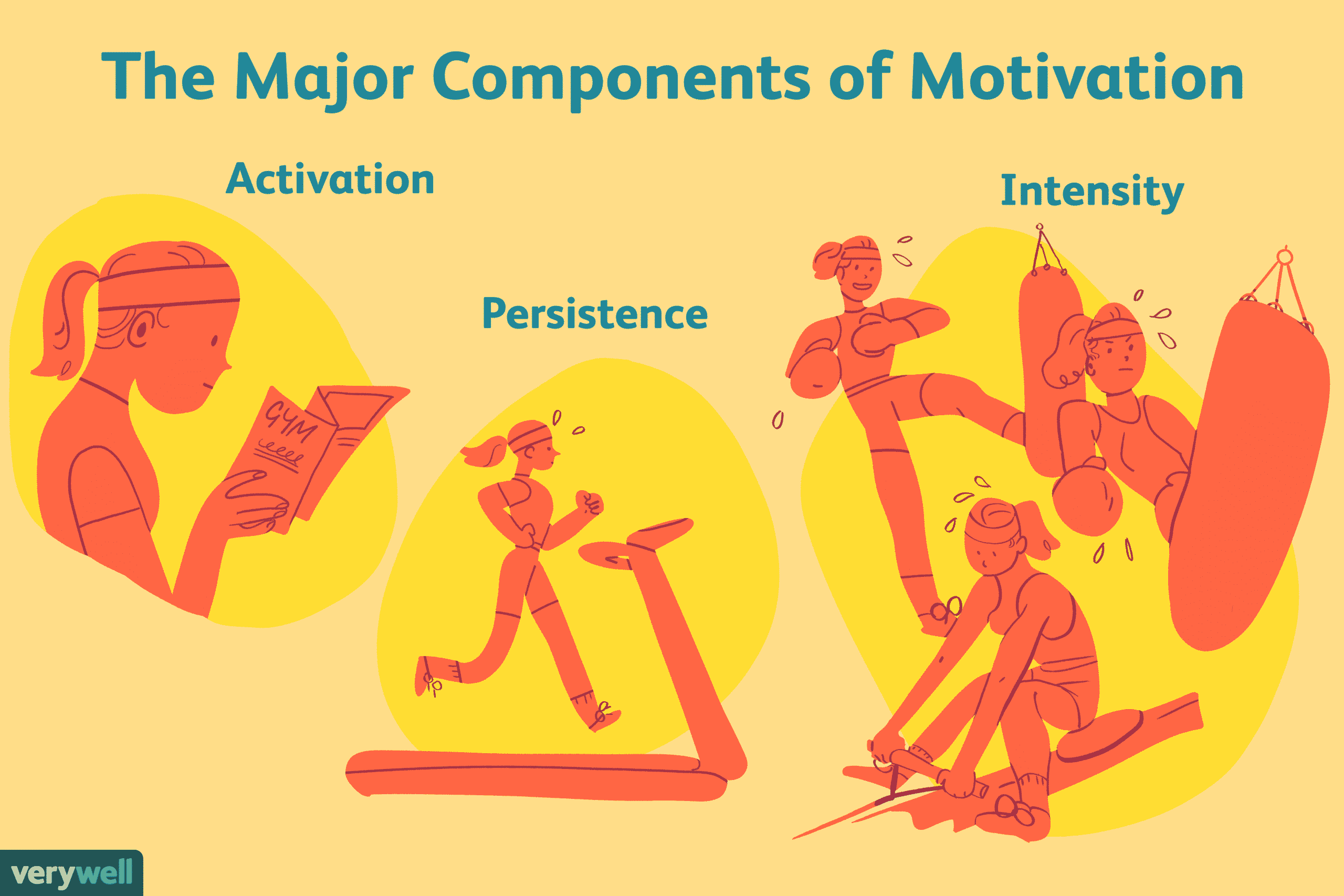 These different elements or components are needed to get and stay motivated. Researchers have identified three major components of motivation: activation, persistence, and intensity.